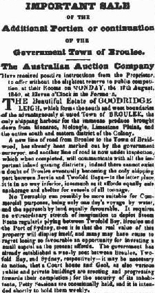 “District of Broulee, 16th. Dec., 1840 “SIR, – After a tiresome journey from Braidwood over a most mountainous road, I arrived at this place a few days ago, having been induced to visit it from certain passing accounts of it which have appeared in the Sydney papers, vaunting the excellency of its harbour, land, &c., but, after a patient investigation of the whole country, I find I have, like many others thrown my time away to very little purpose. Being here, however, and being thoroughly disgusted with all I have seen and heard, I take advantage of a leisure hour and opportunity to Braidwood to forward to you the following description of its situation, prospects, and local government.
