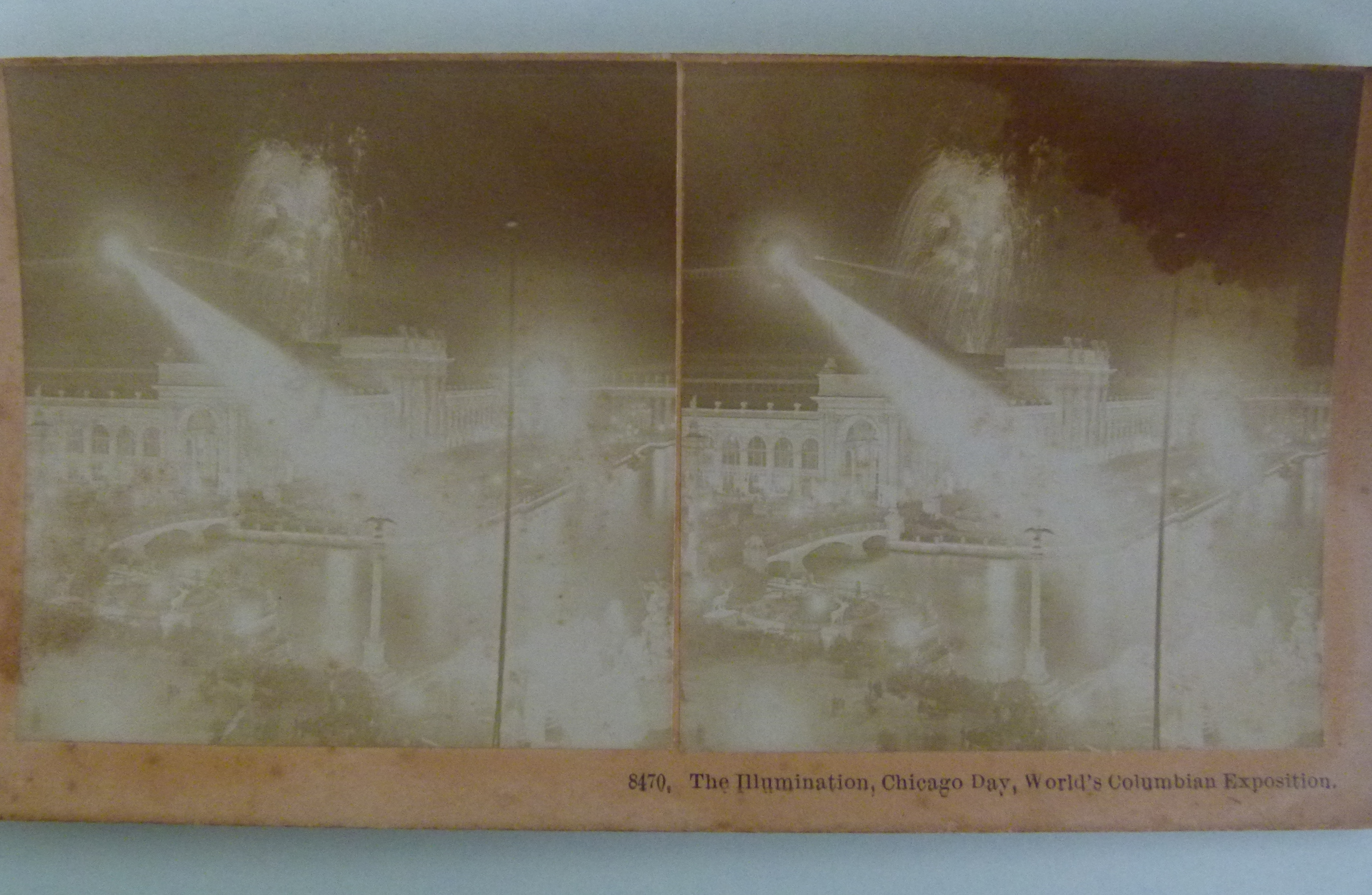 The Columbian Exposition (World Fair), held in Chicago in 1893 was one of the first world events photographed for a world market. Most of these images made their way around the world as stereographs. MDHS has one of these Columbian Exposition sets by Kilburn Bros in its collection.