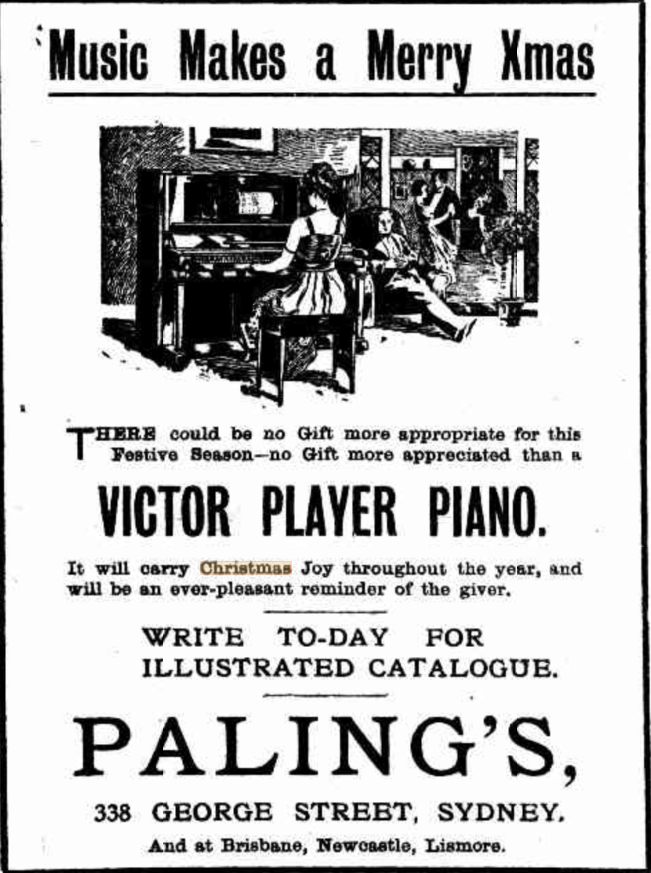 XMAS TREE.– At 3 o’clock this afternoon (Saturday) doors will be open to view the wonderland scene at the Mechanics Hall, where an immense Xmas Tree will be laden with presents to delight the hearts of both young and old.