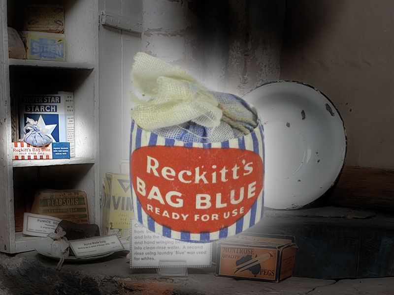 Reckitt’s Bag Blue was a common sight in laundries where it was added to the end of the wash to make clothes appear brighter, especially whites.