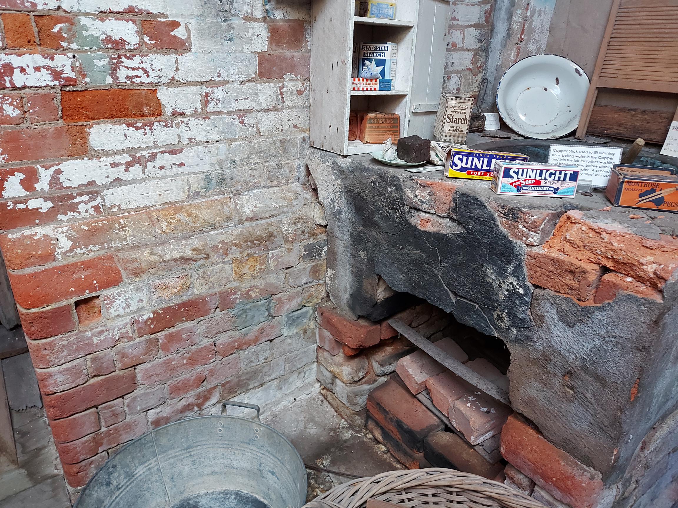 Visitors can explore the kitchen, complete with its wood-fired stove, as well as the laundry area featuring a copper and mangle.