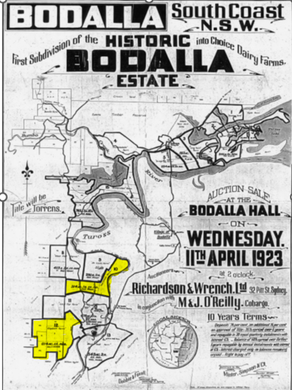 M. and J. O’Reilly and Richardson and Wrench are offering special terms for the two unsold farms, “Mortfield” and “Elizabeth,” of the first subdivision at Bodalla.
