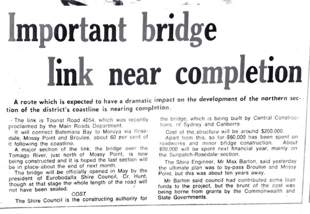 through Rosedale, Mossy Point and Broulee – expected to have a dramatic impact on coastline development.
