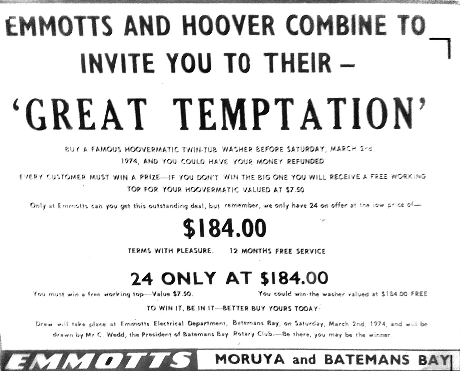 - Snap up a twin-tub hoovermatic from Emmott’s for $184 and save!