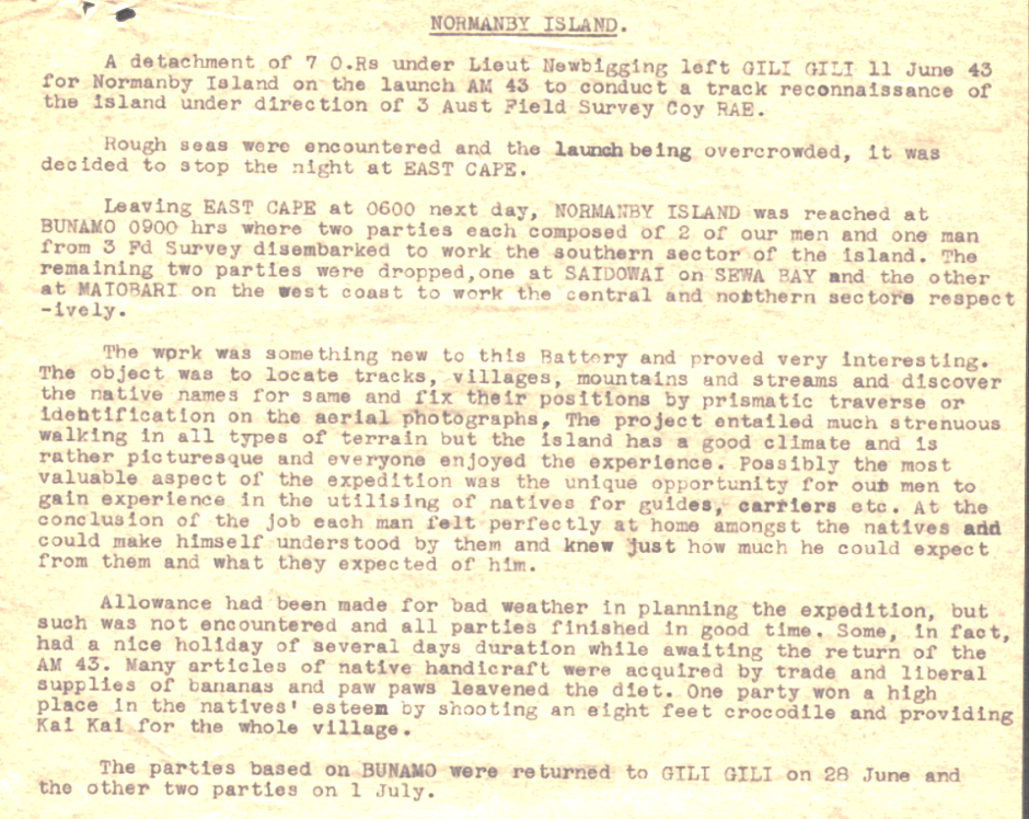 The unit was sent to New Guinea around May 1943, where it focused on surveying and mapping to support artillery operations and troop movements, including projects like the construction of the Madang–Alexishafen Road. In February 1945, it was redeployed to New Britain and was ultimately disbanded in October 1945.
