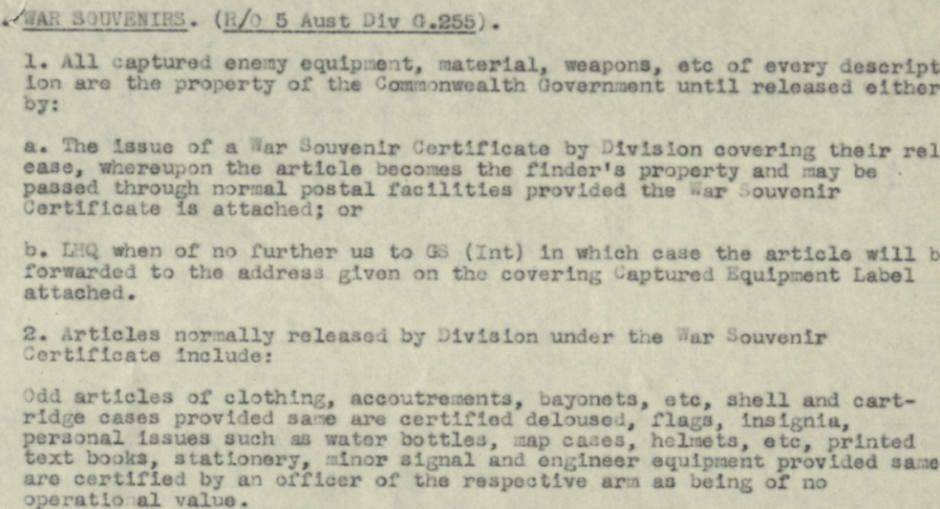 This particular copy carries an even more personal story. It was discovered in New Guinea, likely by members of the 6th Australian Survey Battery—though it may have been passed to them from another unit. After the war, it made its way back to Australia in the hands of Ron Chesher, a member of the Battery from Moruya.