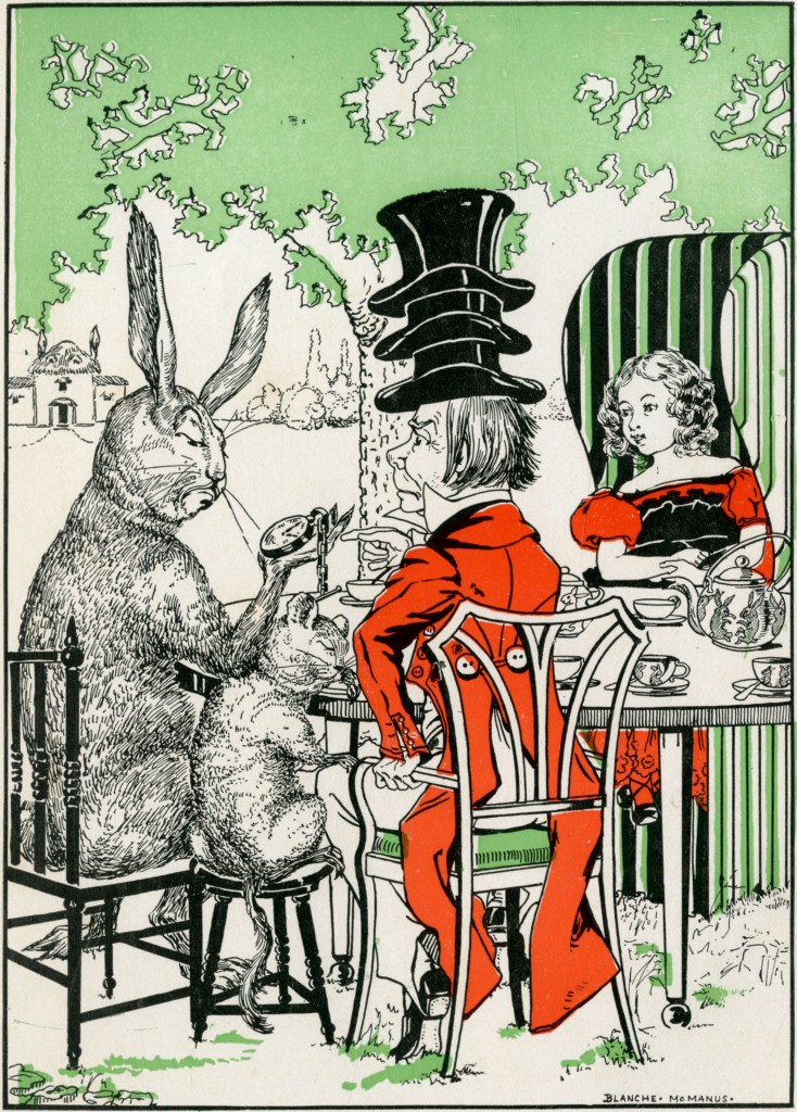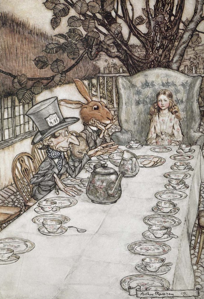 The following illustrations of A Mad Tea Party have come from several editions of Alice in Wonderland published between 1900 and 1969. You can read more about Alice in Wonderland and its illustrators here.