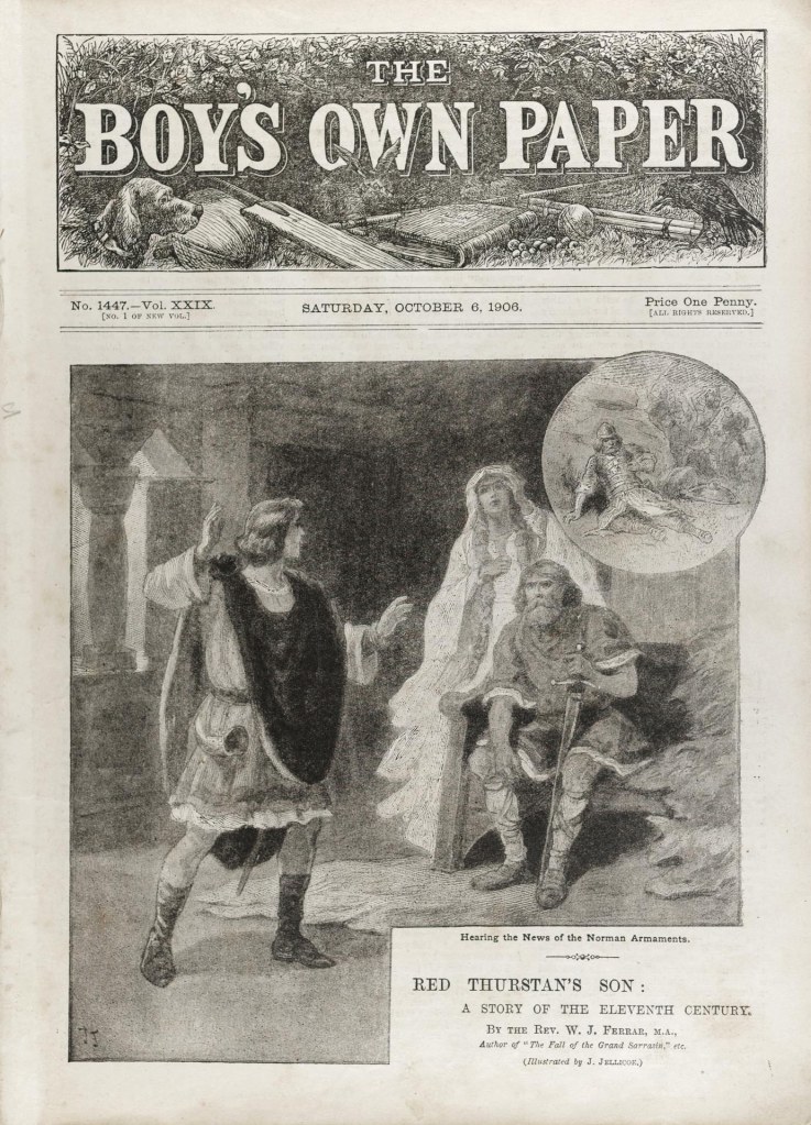 The Boy’s Own Paper was a British story paper aimed at young and teenage boys, published from 1879 to 1967. It was published by the Religious Tract Society, as a means to encourage younger children to read and to instill Christian morals during their formative years. The first issue was published on 18 January 1879. The final issue, a “Special Souvenir Edition, Price 2/-“, was dated February 1967 and was published on 27 January 1967.